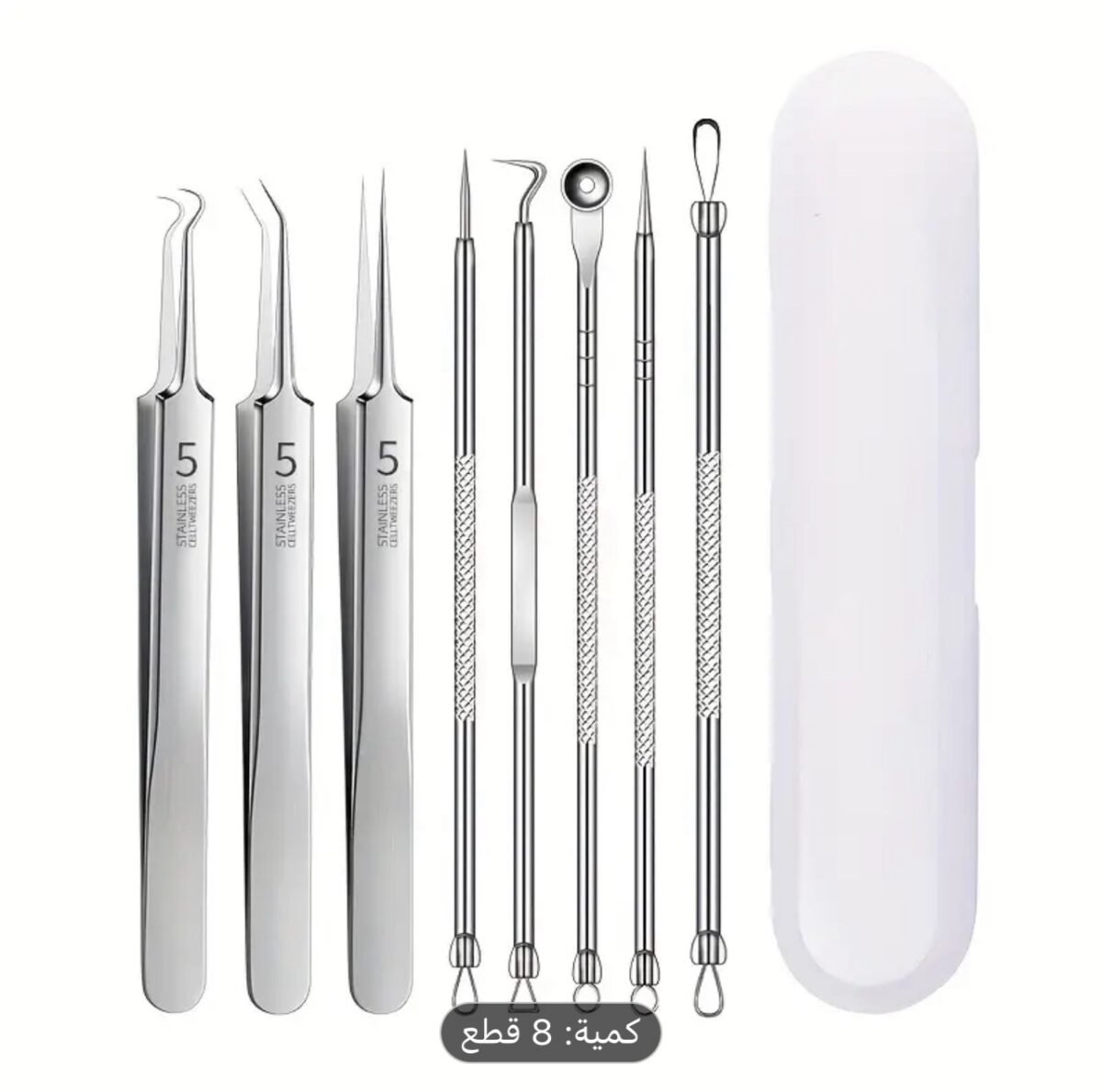 مجموعة إزالة الرؤوس السوداء المكونة من 8 قطع – أدوات استخراج البثور وحب الشباب من الفولاذ المقاوم للصدأ – مجموعة محترفة لإزالة البثور لجميع أنواع البشرة مع حافظة محمولة – أدوات العناية بالوجه غير المعطرة